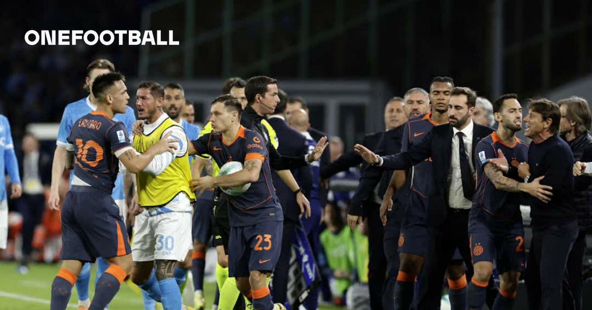 The tension erupted with a scuffle on the touchline sparked by Dumfries and the Napoli bench, resulting in some harsh hand gestures between Lautaro Martinez and Antonio Conte.